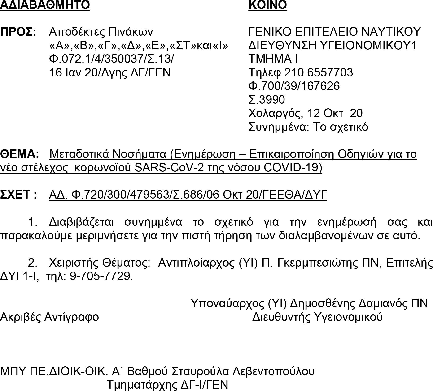 Επικαιροποίηση Οδηγιών για το νέο στέλεχος του covid-19 (SARS-CoV-2) *** Δείτε, για ενημέρωση, το σχετικό Έγγραφο του ΓΕΕΘΑ // 061020