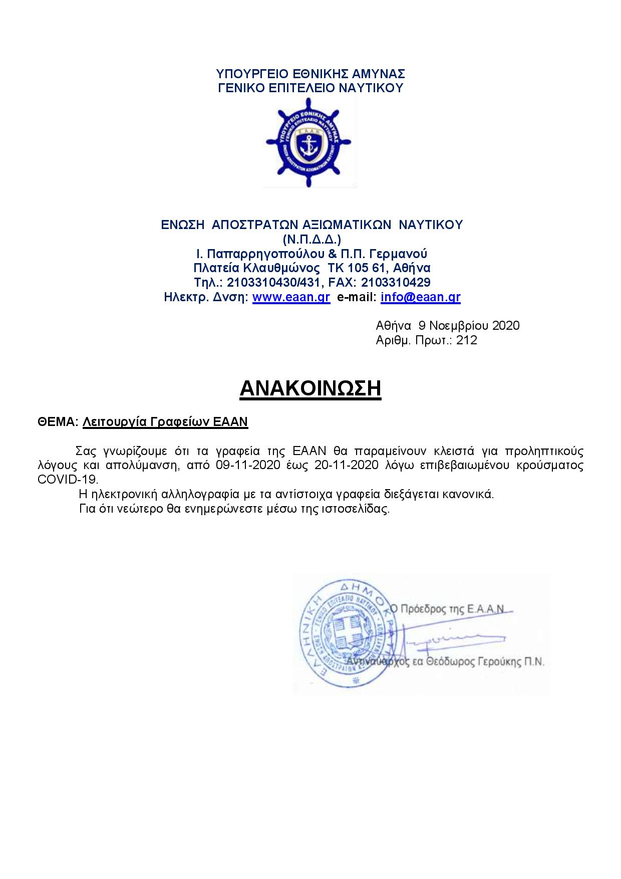 Ανακοίνωση ΕΑΑΝ / Λειτουργία Γραφείων ΕΑΑΝ