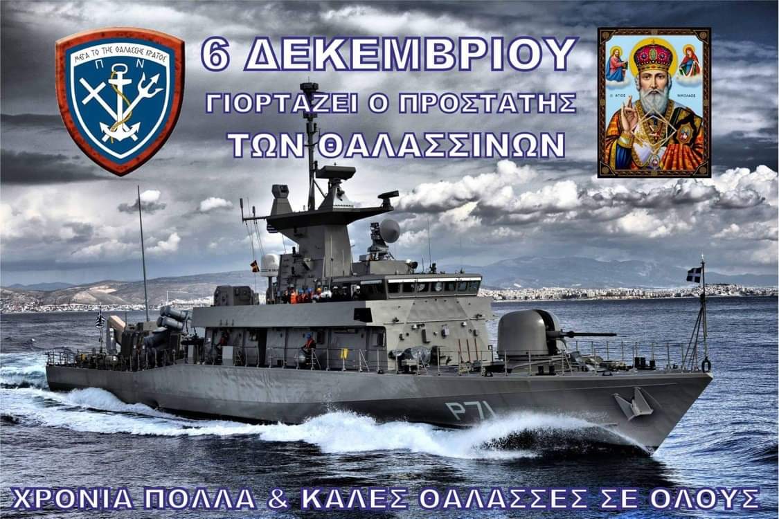 Σας γνωρίζεται ότι ο Εορτασμός του Αγίου Νικολάου την Κυριακή 6 Δεκεμβρίου θα πραγματοποιηθεί στη Σχολή Ναυτικών Δοκίμων χωρίς την παρουσία κοινού.