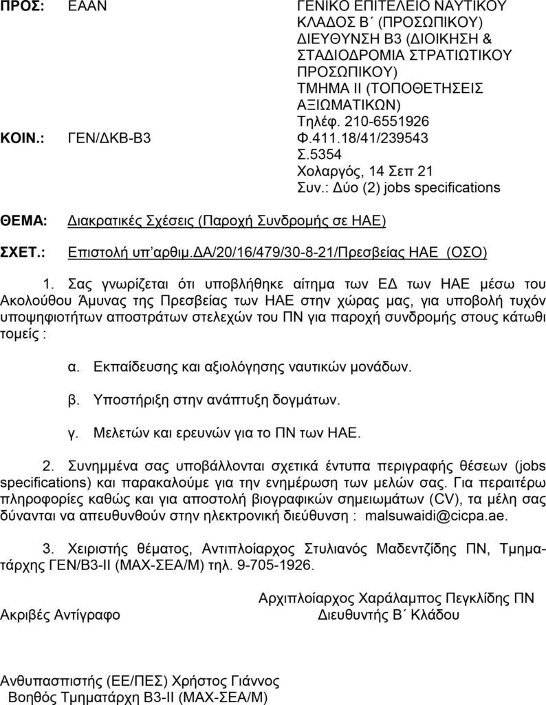 Θέσεις Εργασίας για Απόστρατους Αξιωματικούς στα ΗΑΕ