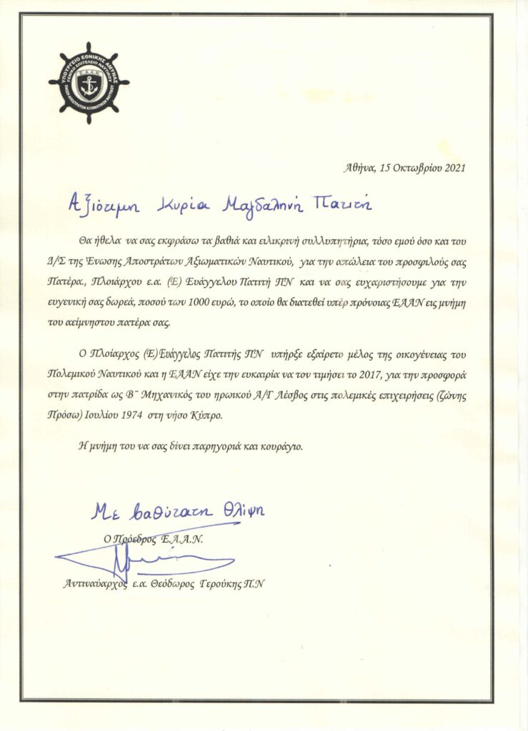 Ευχαριστήρια Επιστολή Προέδρου ΕΑΑΝ