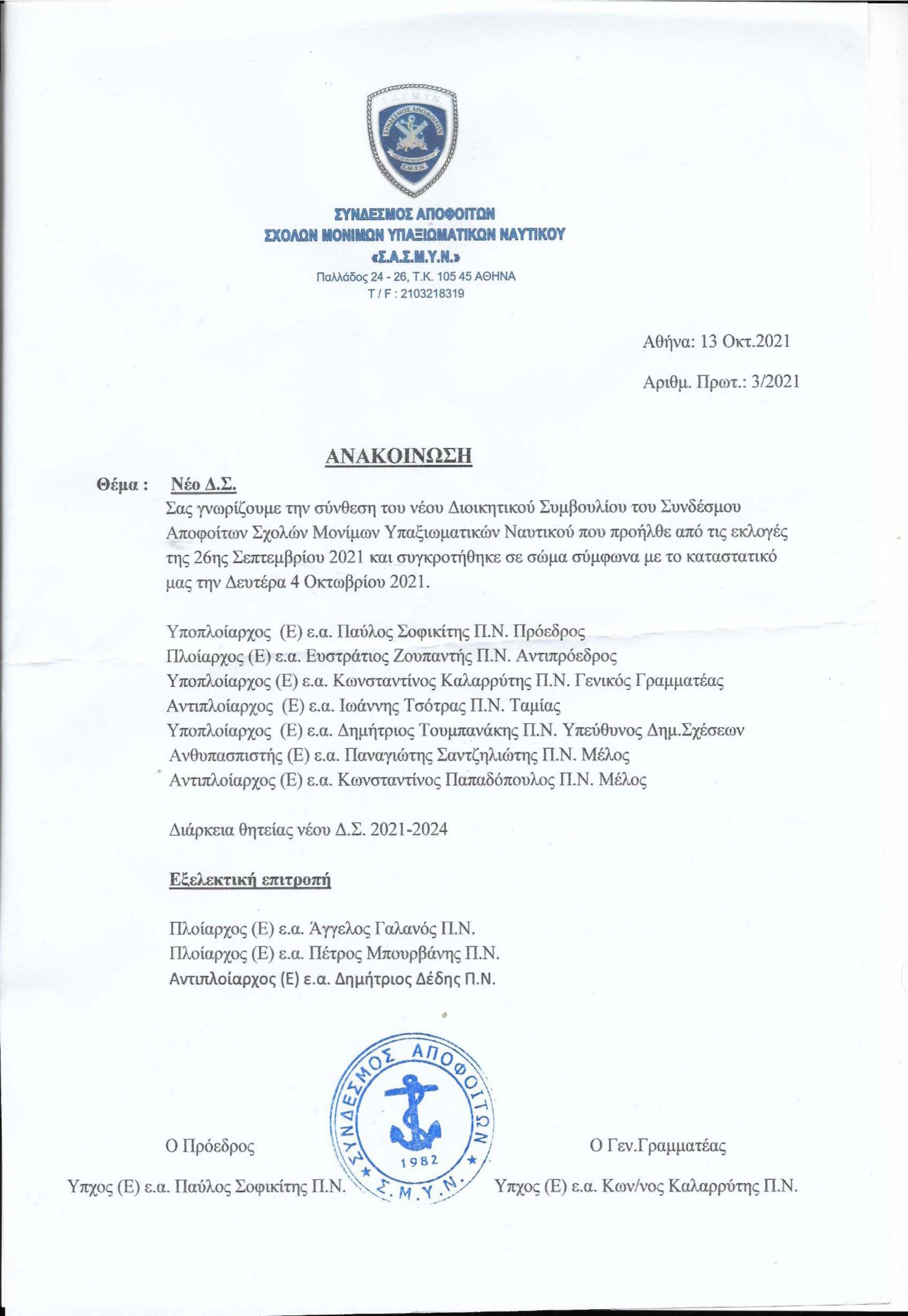 Ενημερωθείτε για τη νέα σύνθεση του Δ.Σ./Σ.Α.Σ.Μ.Υ.Ν., η οποία προήλθε από τις εκλογές της 26ης Σεπτεμβρίου 2021.