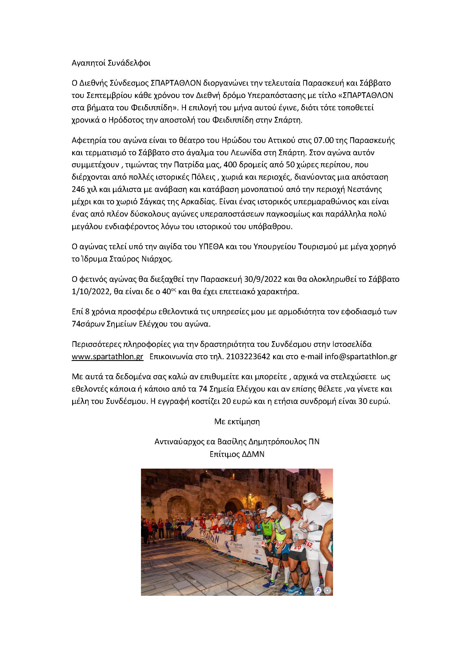 Σπάρταθλον / Πρόσκληση Εθελοντικής Συμμετοχής στη Διοργάνωση & Πραγματοποίηση