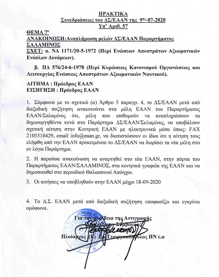 Αναπλήρωση Μελών ΔΣ/ΕΑΑΝ Παραρτήματος Σαλαμίνος
