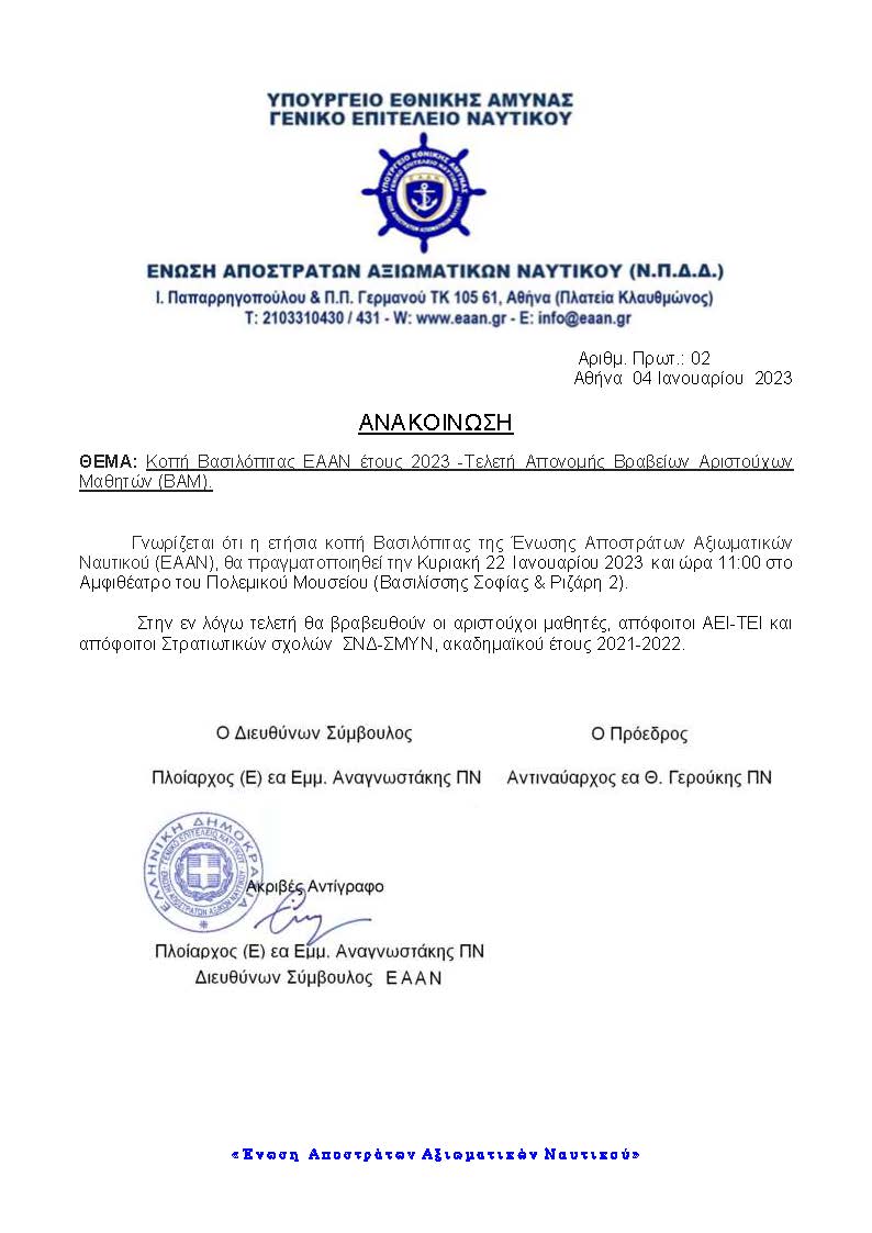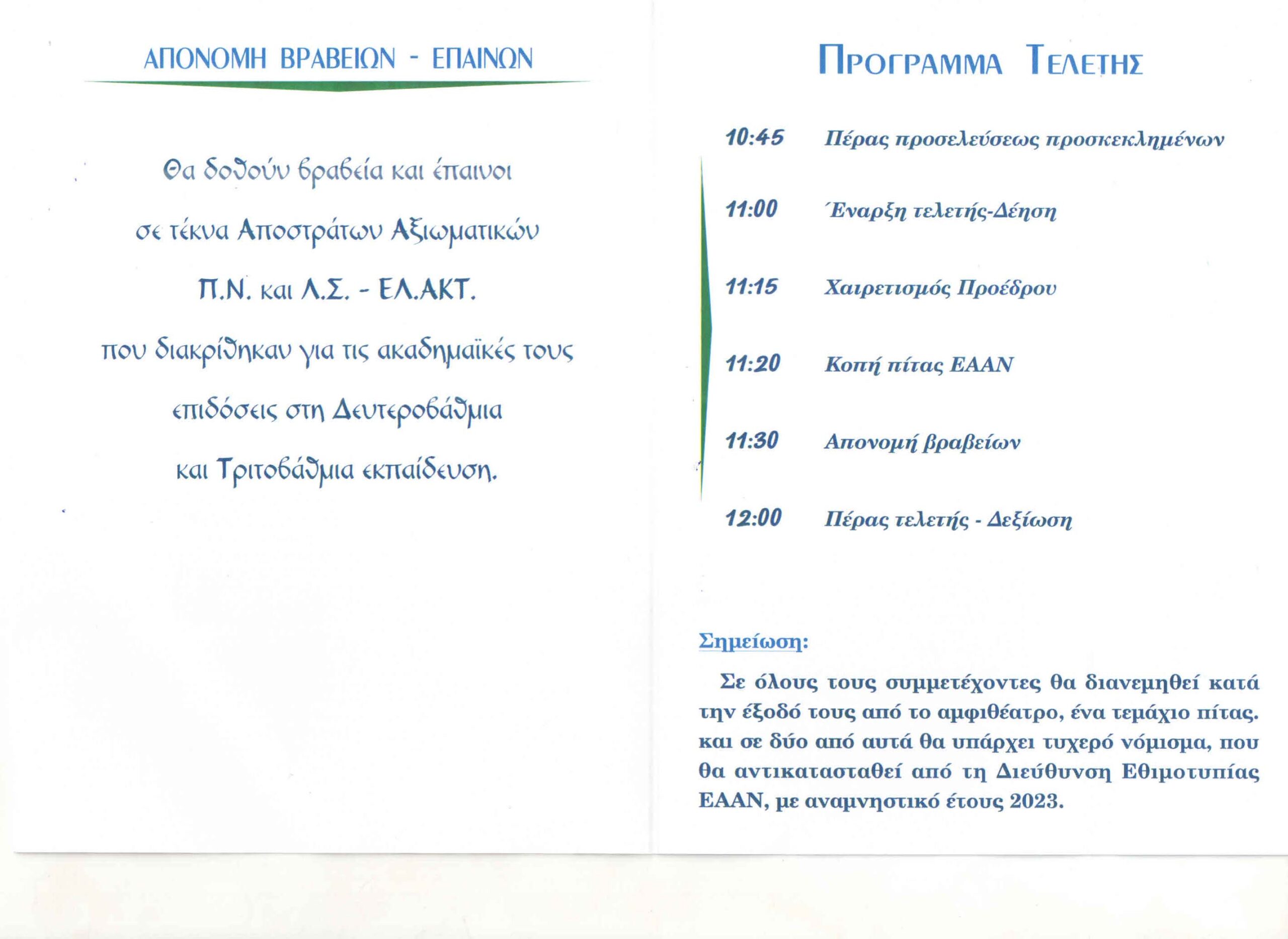Κοπή Πίτας ΕΑΑΝ 2023 -Τελετή Απονομής Βραβείων Αριστούχων Μαθητών