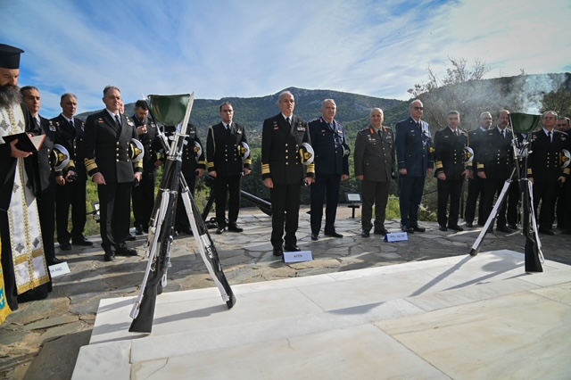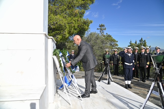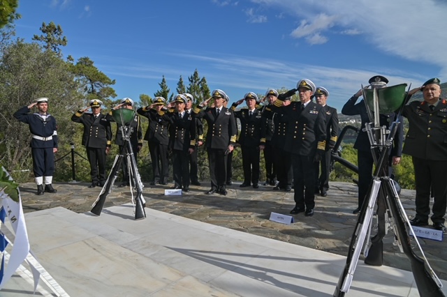 Ο Αρχηγός ΓΕΝ Αντιναύαρχος Ιωάννης Δρυμούσης ΠΝ, εκπροσωπώντας και τον Αρχηγό ΓΕΕΘΑ Στρατηγό Κωνσταντίνο Φλώρο, τη Δευτέρα 27 Νοεμβρίου 2023, παρέστη στην ετήσια επιμνημόσυνη δέηση για τους πεσόντες του Πολεμικού Ναυτικού κατά την εκτέλεση του καθήκοντος, που τελέσθηκε στο Ναυτικό Οχυρό Σκαραμαγκά.